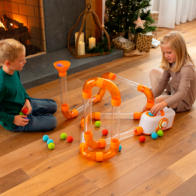 This expansion pack of Air Toobz comes with enough tubes and connectors to double the length of your Air Toobz build, plus 10 extra balls to keep the fun flowing. Explore and experiment even more endlessly with the Air Toobz Expansion Pack!