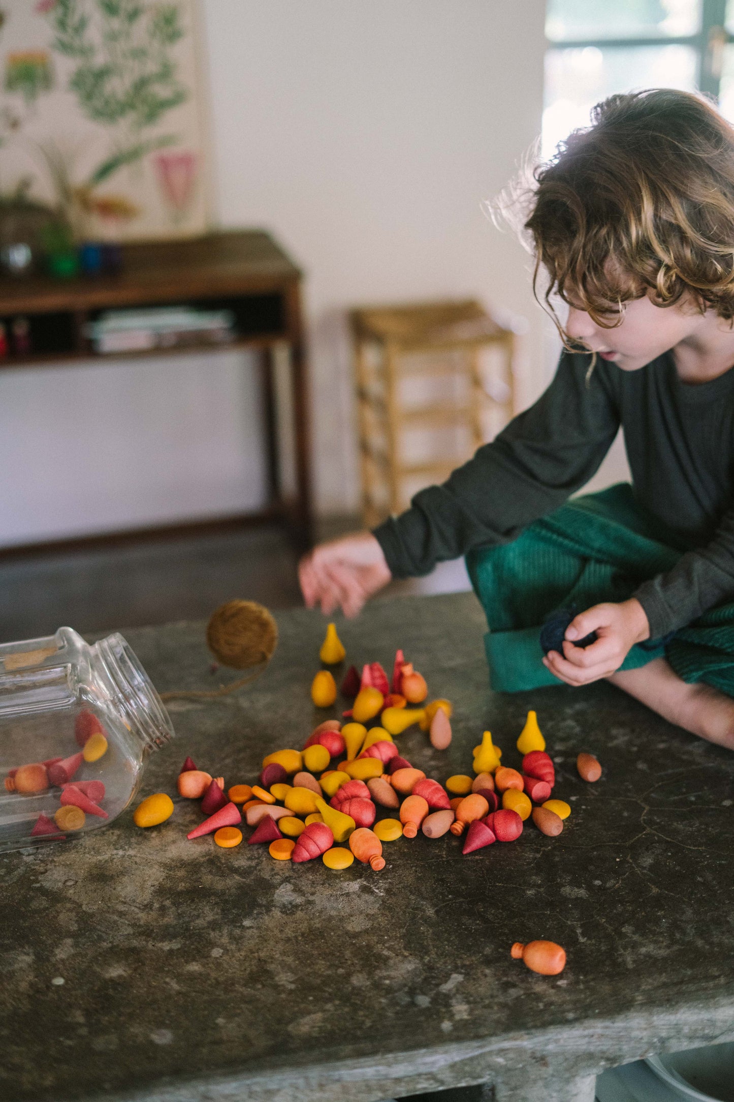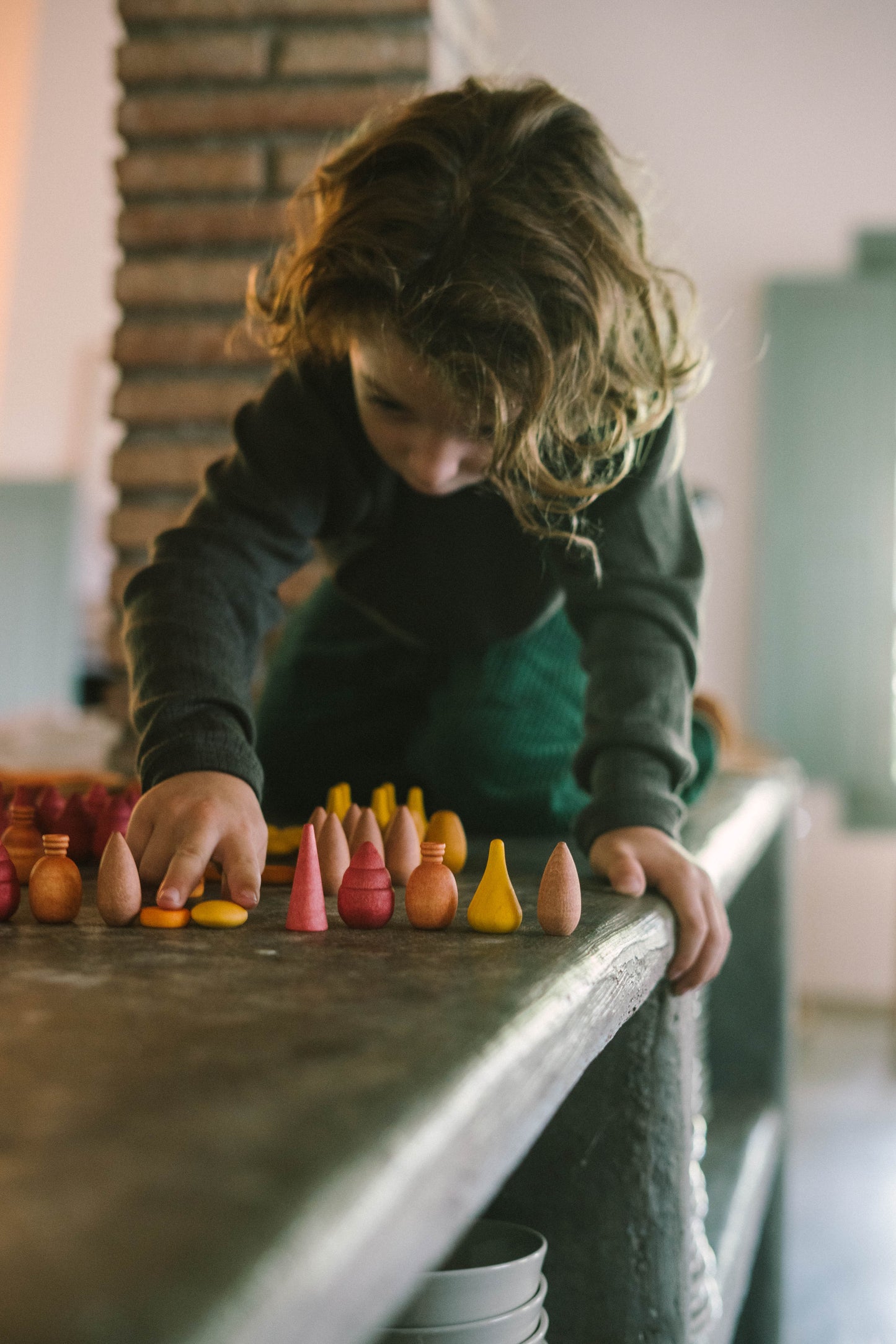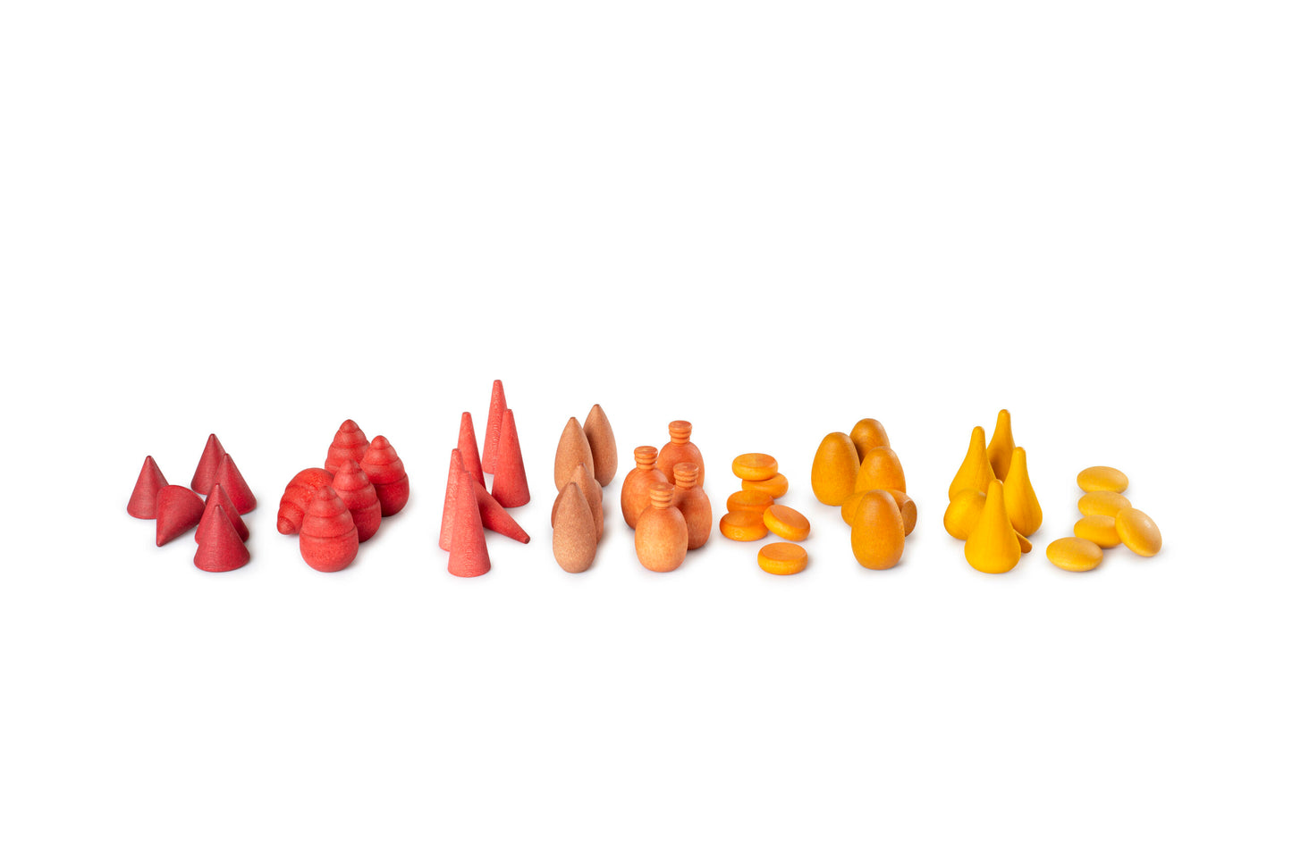 Grapat parts connect children to the natural world: they are made of sustainably sourced wood and feature the colours of the rainbow using water based non-toxic dyes.