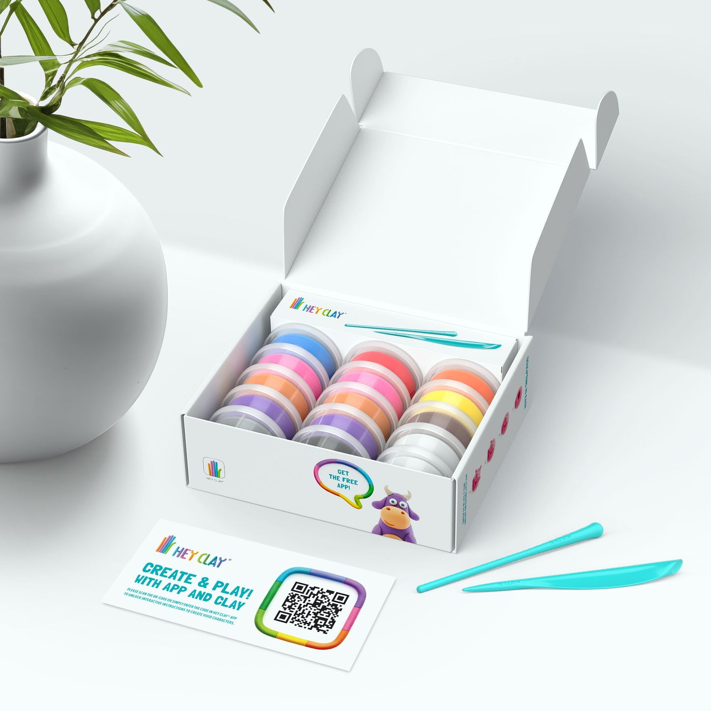 The fun starts once you download the free app and gain full access using the code included in the box. Pick one of the animal characters. Then, follow along with the interactive 3D step-by-step instructions to masterfully mold it, one simple shape at a time. Spheres, cylinders, facial features, textures, and more... Kids learn real sculpting techniques without even realizing it! Jumpstart your young artist's new career with the wild and wondrous Hey Clay Animals set.