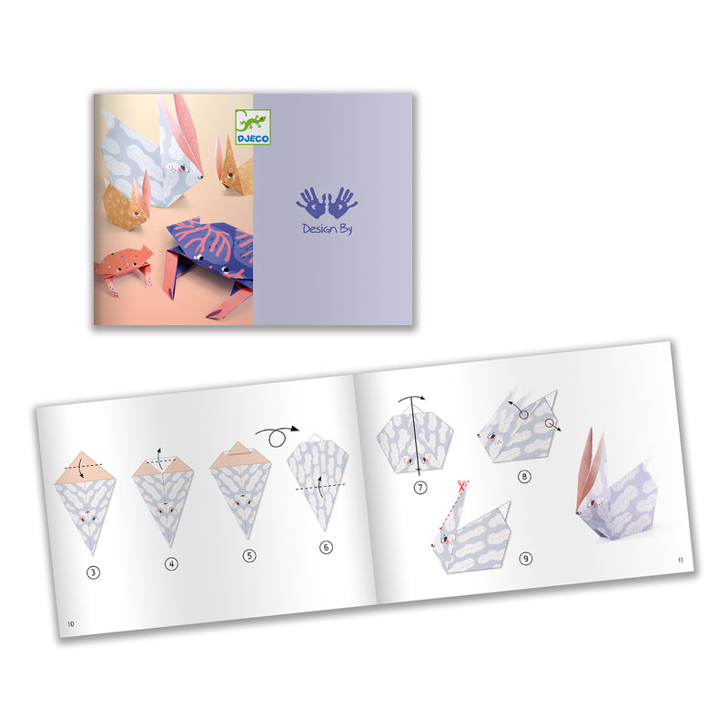 Create cute animal families with this great Djeco art and craft kit. Children fold colourfully illustrated paper with printed instruction to create cute animal families