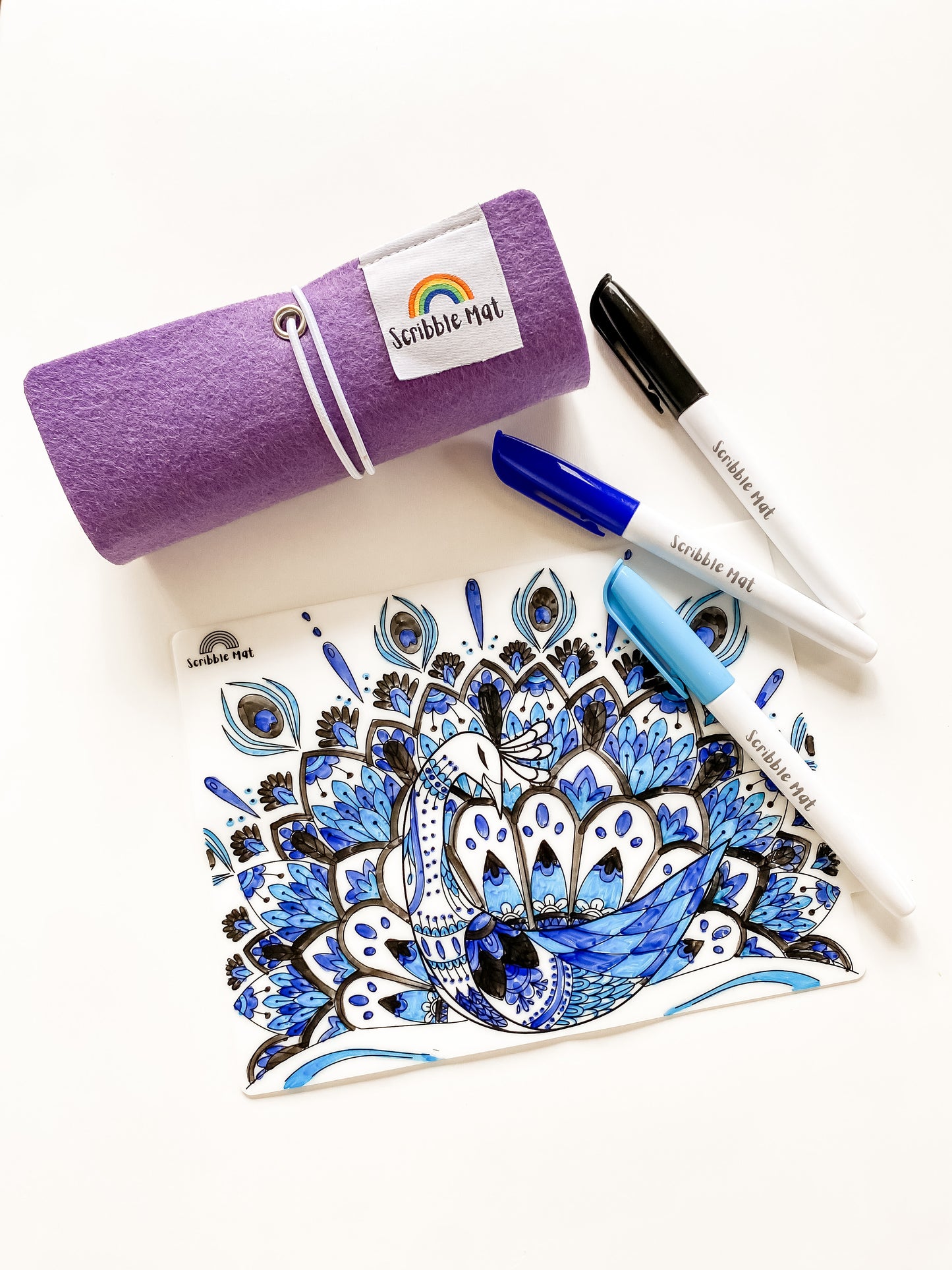 MINI Reusable Scribble Mat - Peacock Mandala