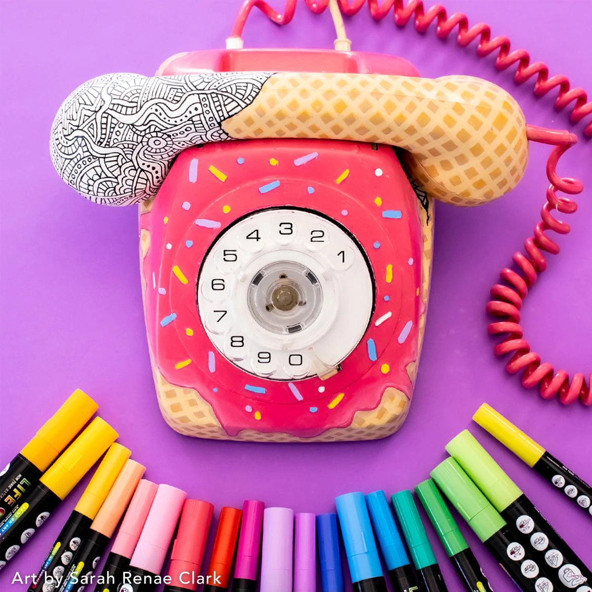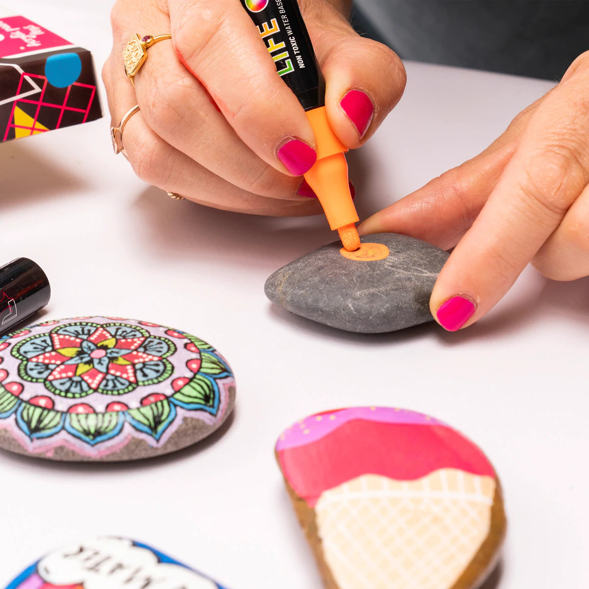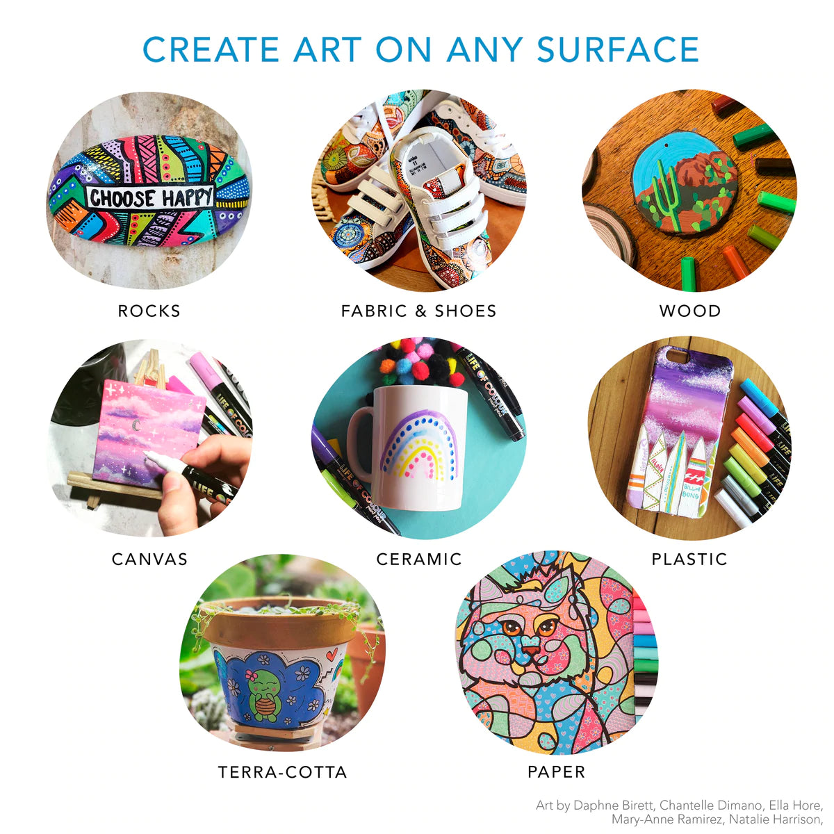 - Set includes 12 vibrant, highly-pigmented, water-based paint pens filled with acrylic paint