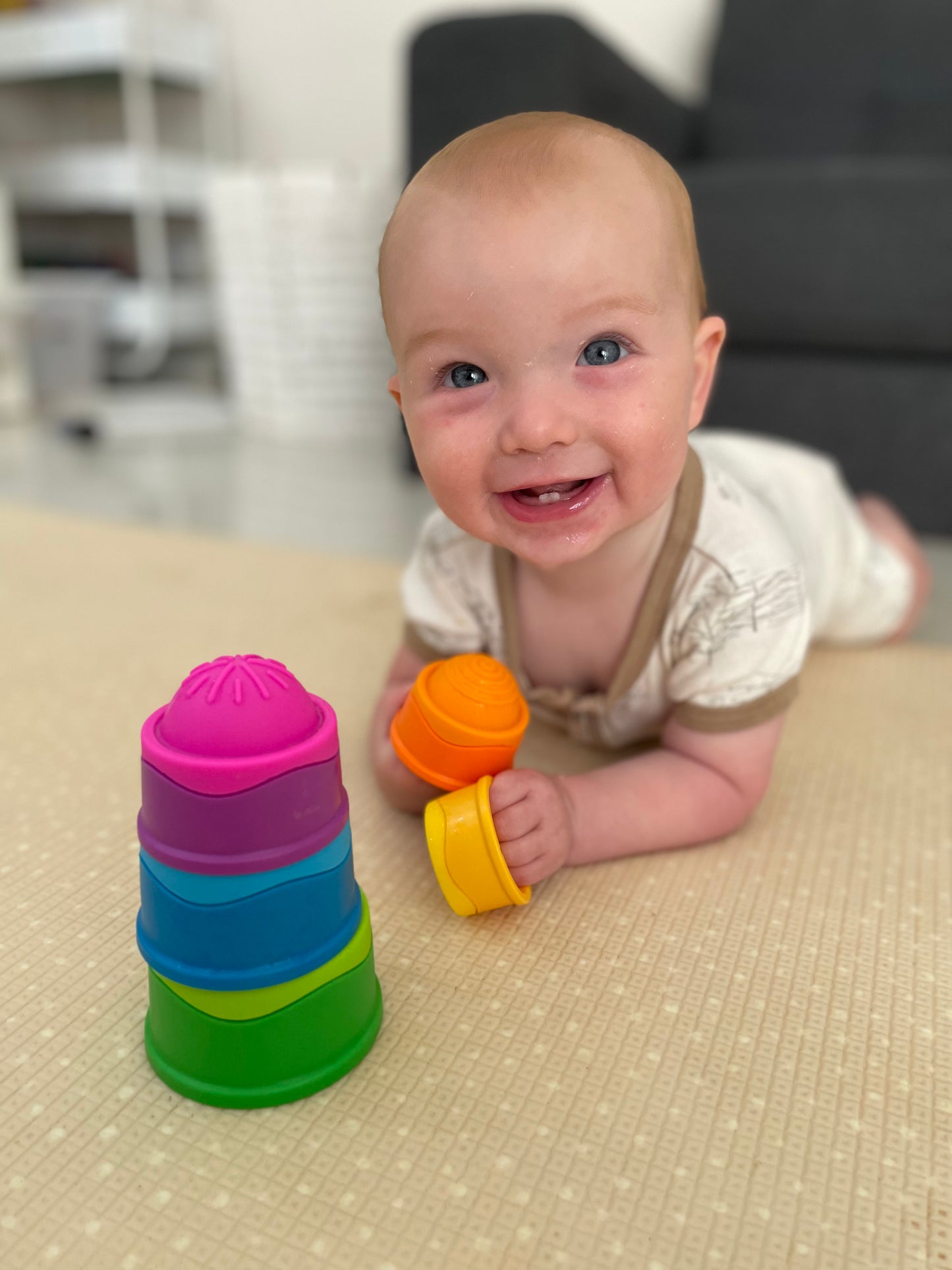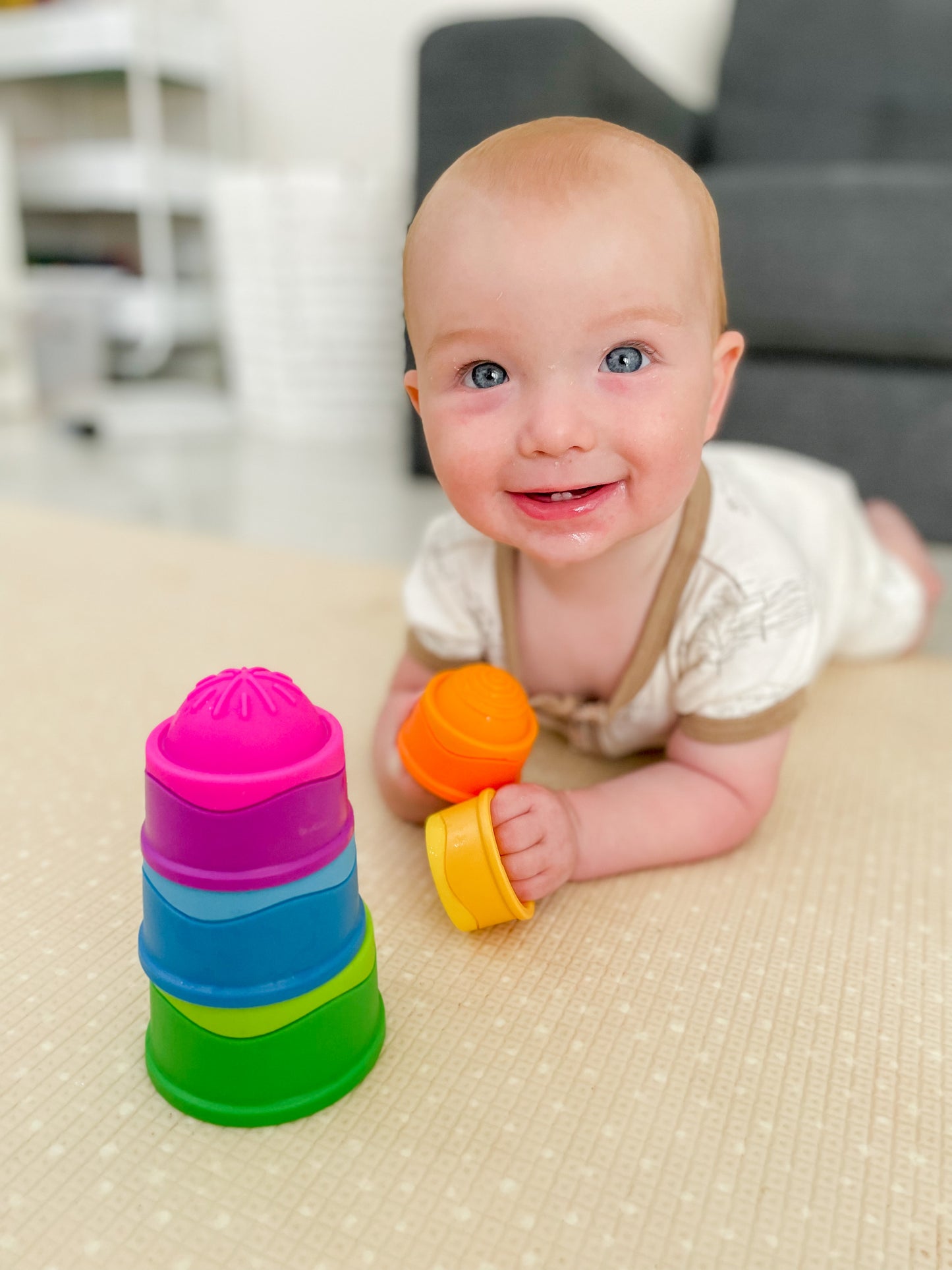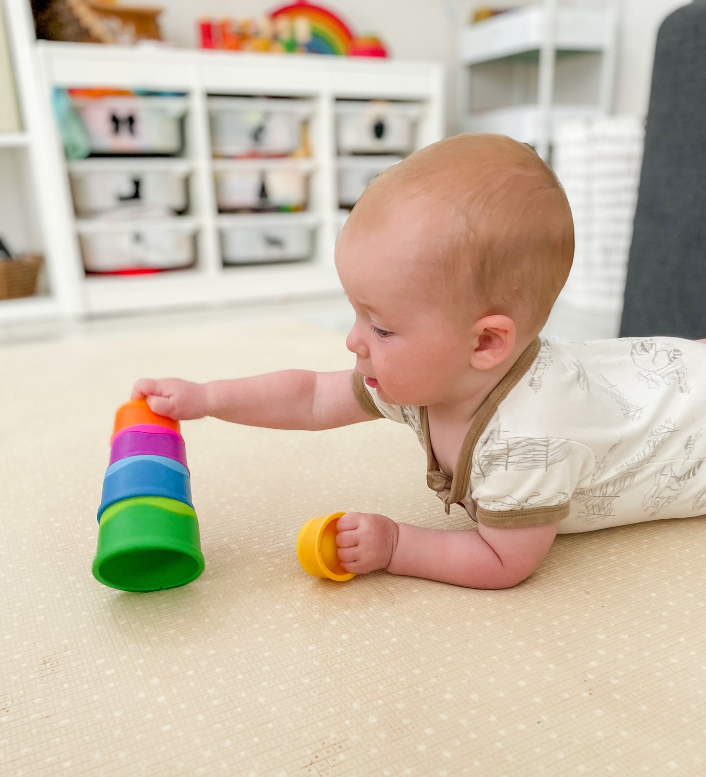 The top of each cup features a squishy silicone bubble embossed with a unique texture pattern. Little fingers will love to touch, push, and pop them again and again.