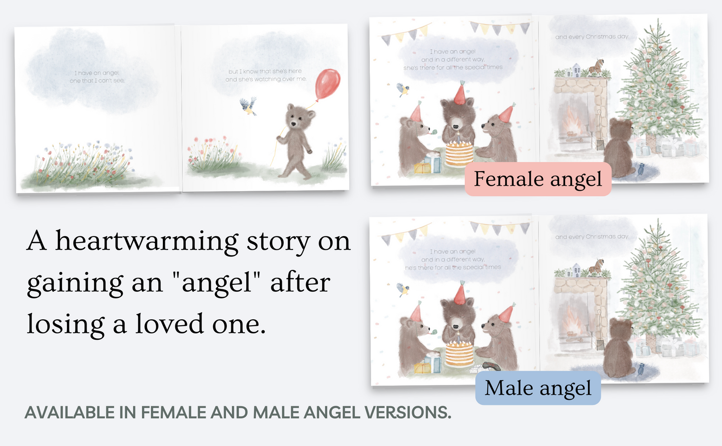 This thoughtful story revolves around a little bear and their “angel”, which is a beautiful blue bird, representing the departed loved one who is lovingly watching over them. It provides a comforting narrative that resonates deeply with children, offering them a sense of connection, love, and healing.