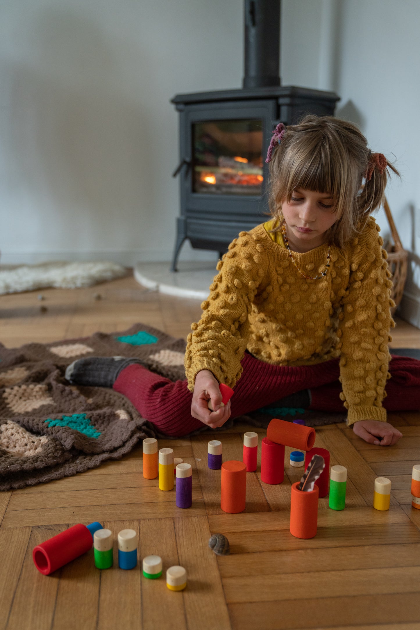One of the two little sisters of our renowned Lola set, containing 36 pieces in our 6 basic colours. Open-ended and cheerful by nature, Lo is the perfect companion for any playtime. Also perfect for activities that stimulate divergent thinking, eye-manual and logical-mathematical development.