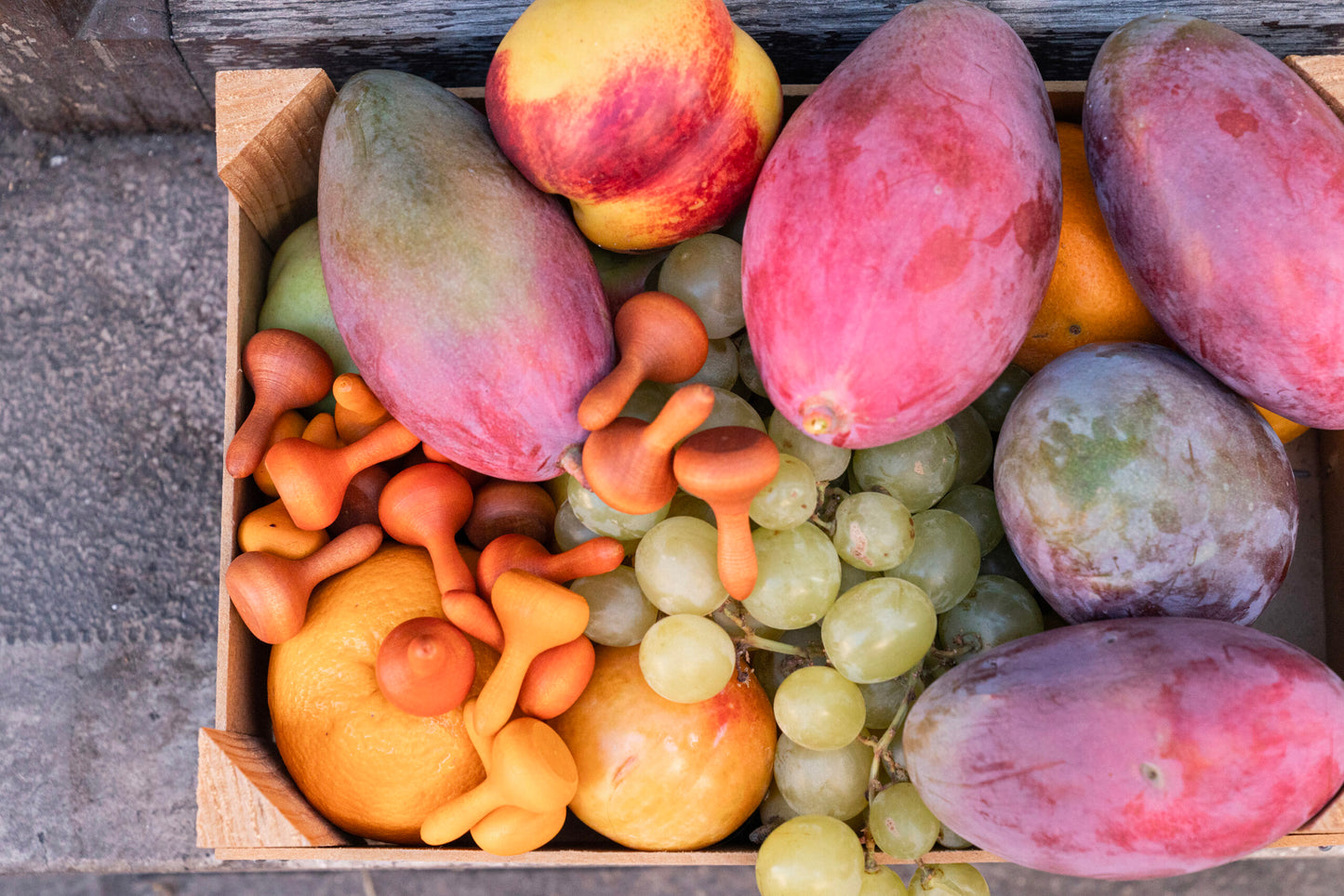 Grapat parts connect children to the natural world: they are made of sustainably sourced wood and feature the colours of the rainbow using water based non-toxic dyes.