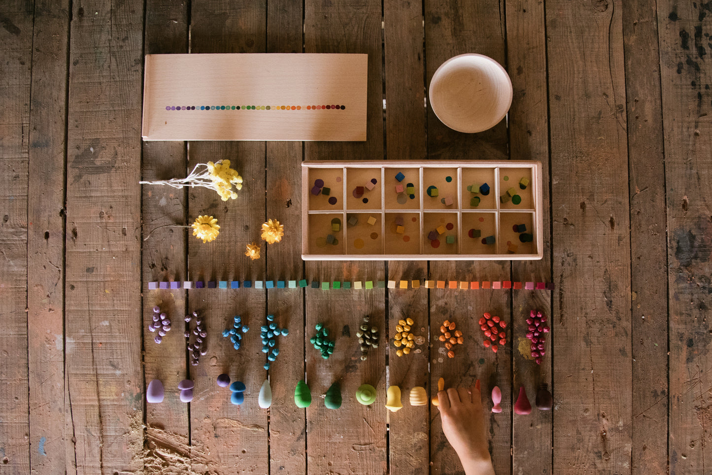 colours of the rainbow/ includes a hand painted wooden sorting box