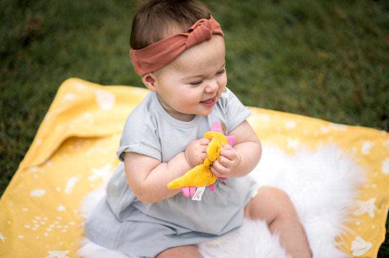 There is something satisfying about feeling this crinkle scrunchie toy. It crackles and crunches offering a sensory experience for little ones. The sound and feel of the fabric will capture a baby's attention while offering benefits to their development as well. A great toy for distracting and entertaining while getting their nappy changed or while out and about.