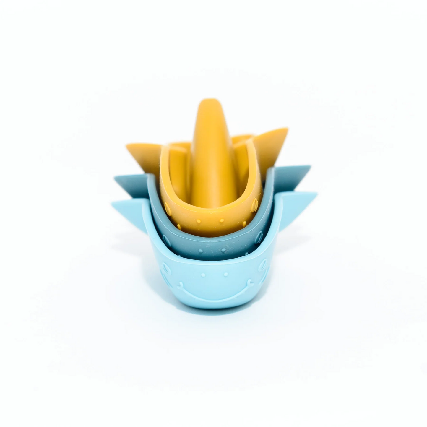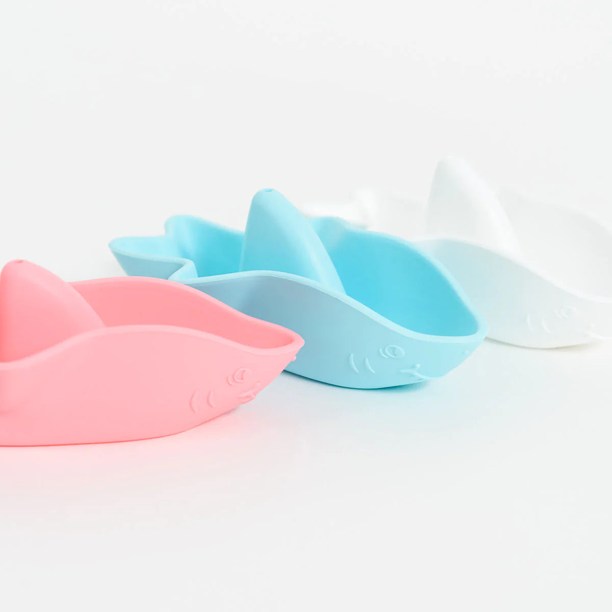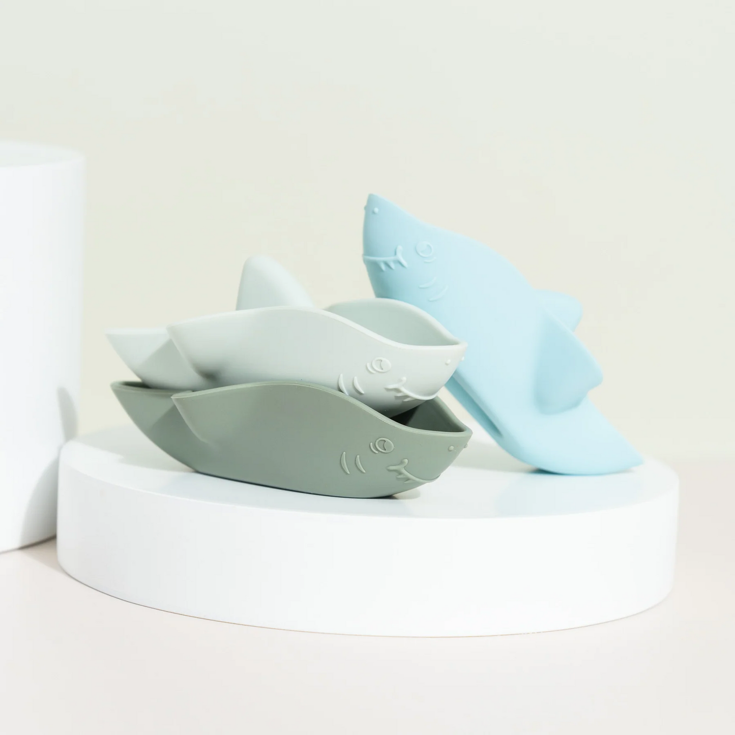 Make bath time more fun with these cute Shark Bath Mates. Made from 100% food grade silicone, these squeezable sharks are designed with little hands in mind. Watch them bob about in the bath, take them to the beach for water play or use for imaginative play. The face detail on these little guys really brings them to life, and along with their one piece design and hole in the fin for easy cleaning, they really are the perfect addition for water play.