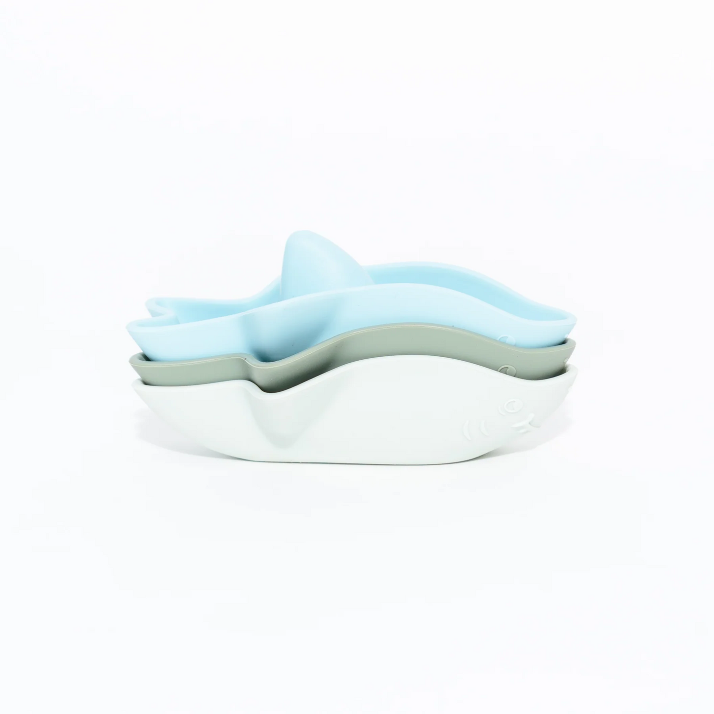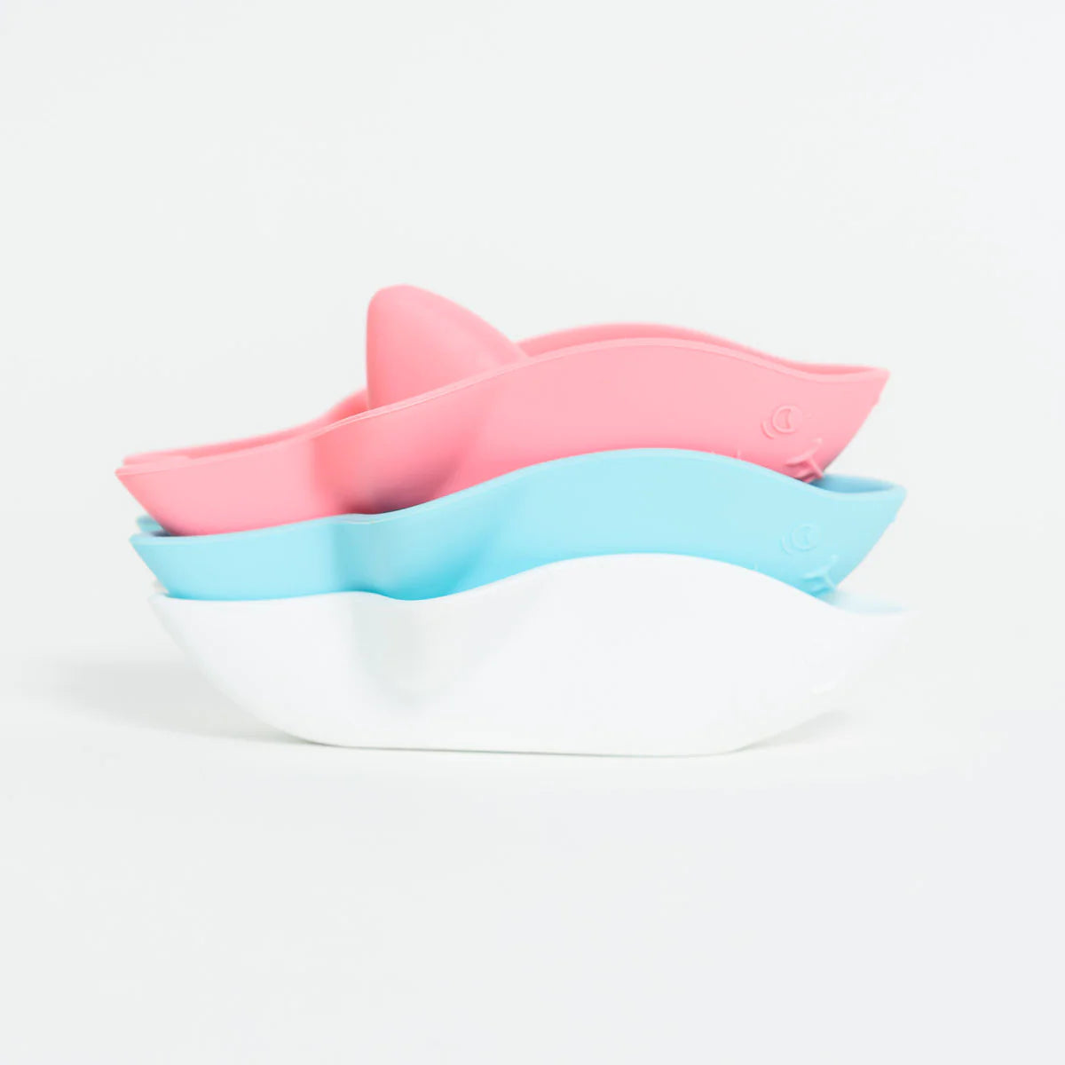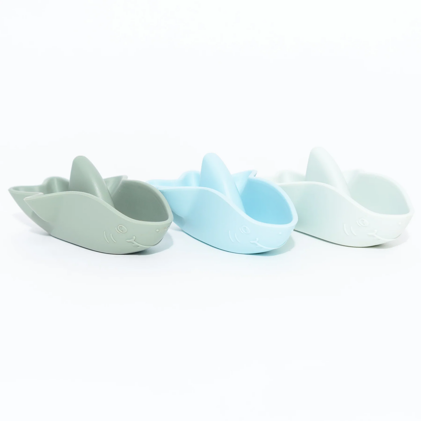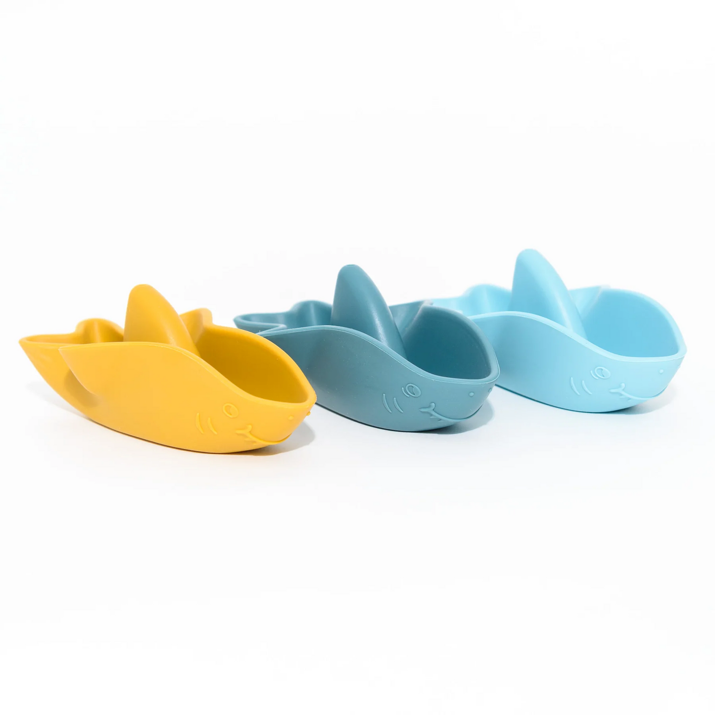 Make bath time more fun with these cute Shark Bath Mates. Made from 100% food grade silicone, these squeezable sharks are designed with little hands in mind. Watch them bob about in the bath, take them to the beach for water play or use for imaginative play. The face detail on these little guys really brings them to life, and along with their one piece design and hole in the fin for easy cleaning, they really are the perfect addition for water play.