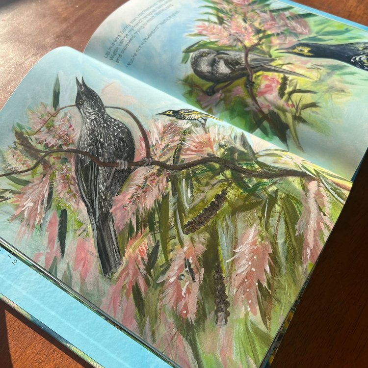Non-fiction information follows the main narrative, along with other examples of species that benefit from the protection of box-ironbark woodlands, with images annotated with their common and scientific names.