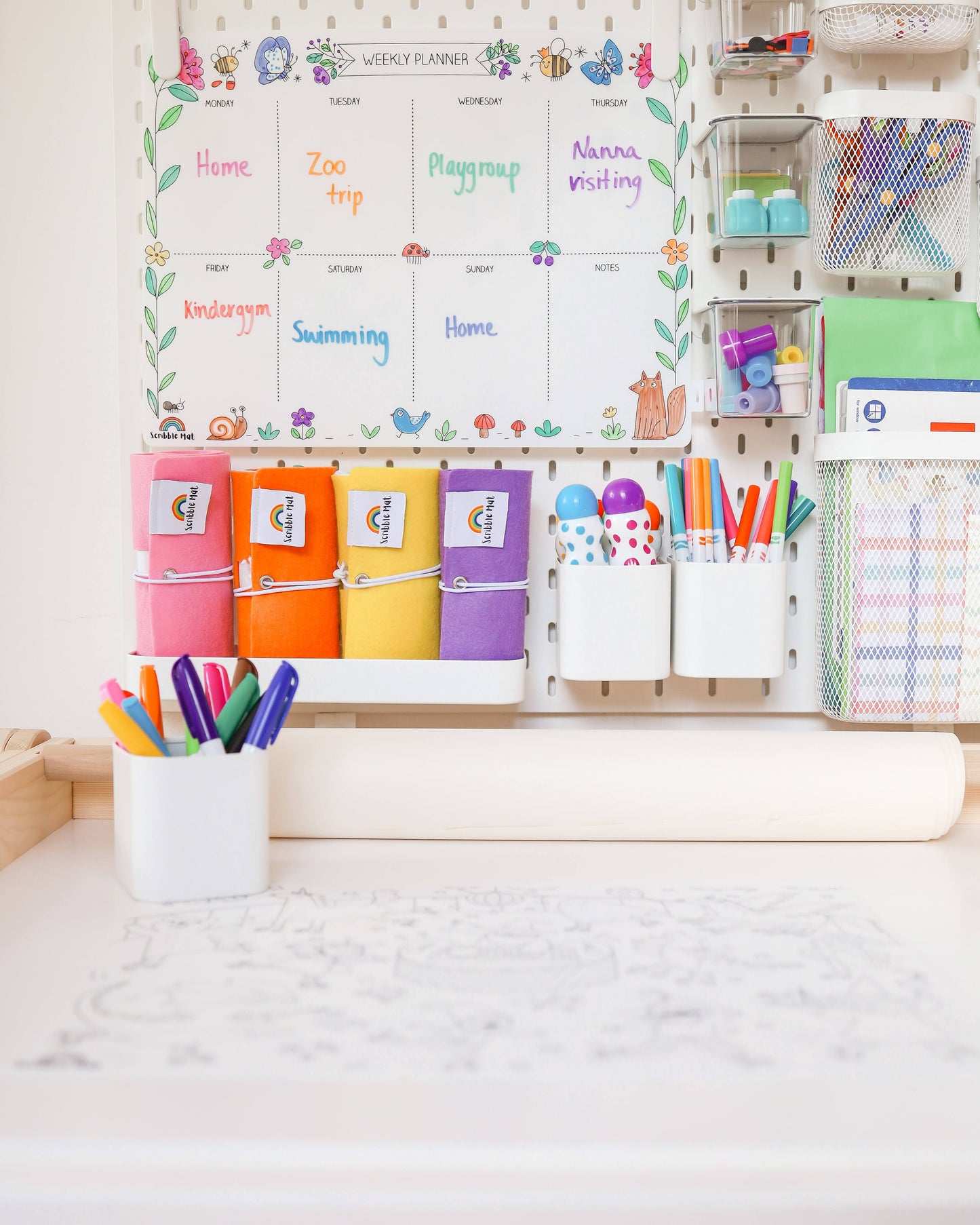 As a former teacher and now business owner I am always writing lists for myself. Wasting paper is a pet peeve of mine so the idea of a reusable weekly planner was formed. This mat is used by me at home on my desk and is perfect for students, parents, teachers and home schoolers. As it is reusable you no longer have to buy paper weekly planners and can even use the back of the mat for more lists and ideas.