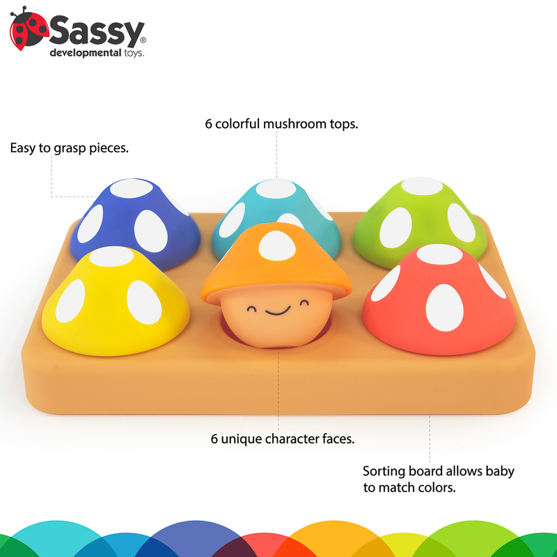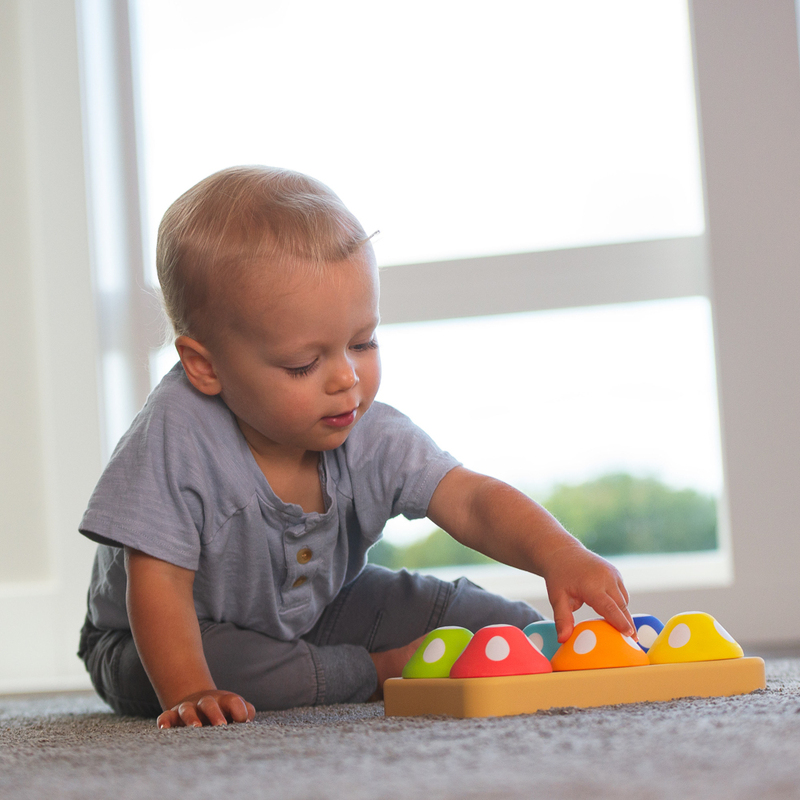 The Matching Mushrooms are designed to match the colour of the mushroom top to the colour on the sorting board. Help baby learn colour names and develop their fine motor skills as they sort each mushroom into the board. For emotional learning, identify emotions associated with colours.