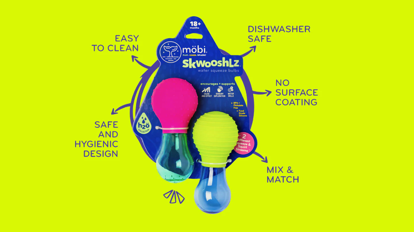 Make a splash with Skwooshlz! These water squirters are the perfect bathtime fun for little ones! Fill the Skwooshlz with water and watch with delight as your children discover the gently but unique ways they spray! Mix and match tops and bottoms for extra fun!