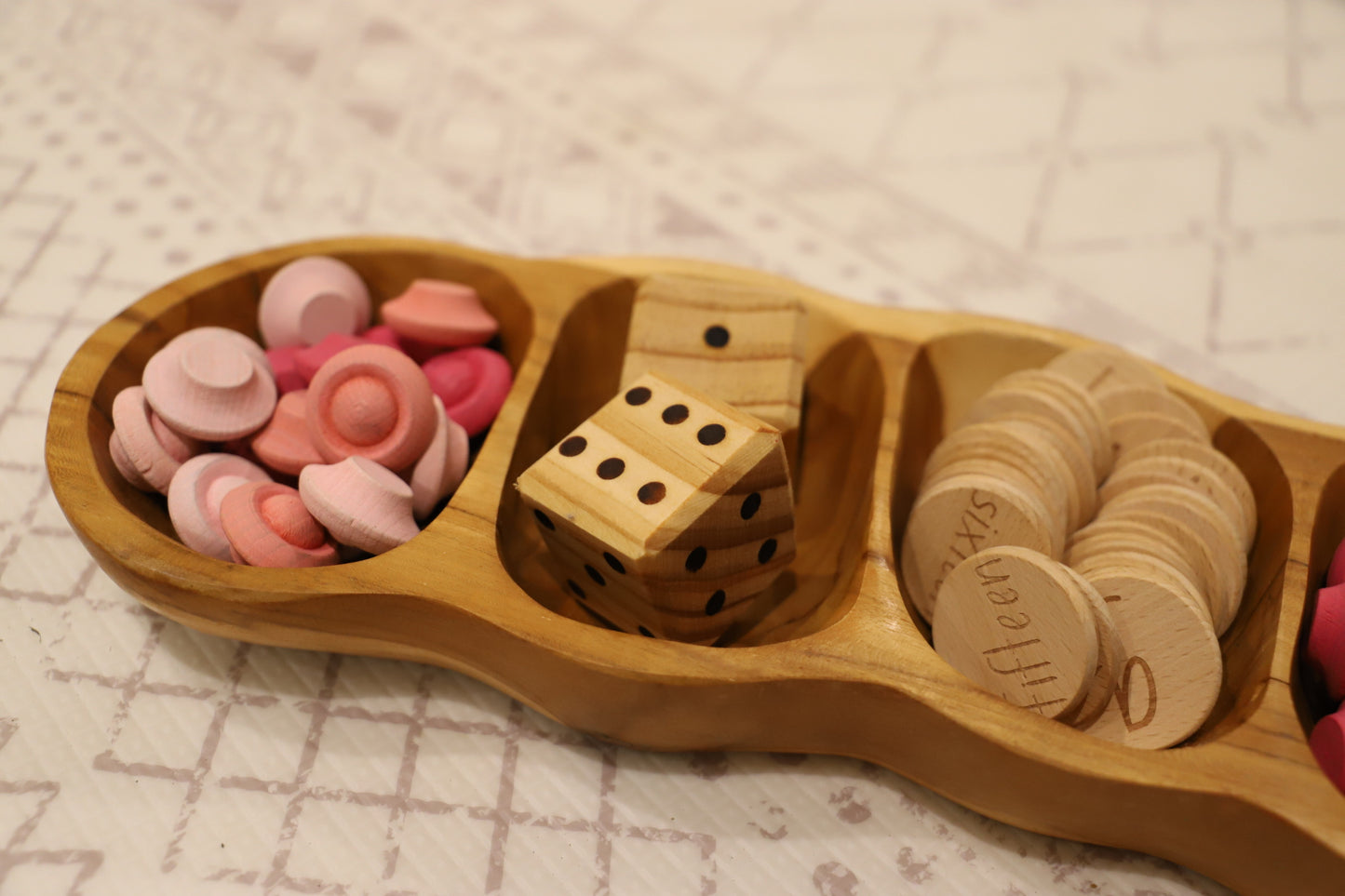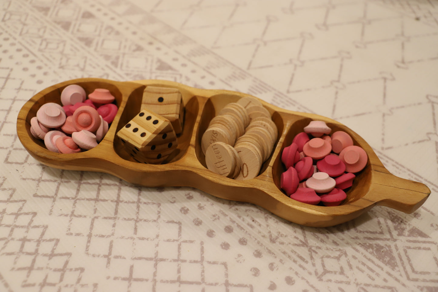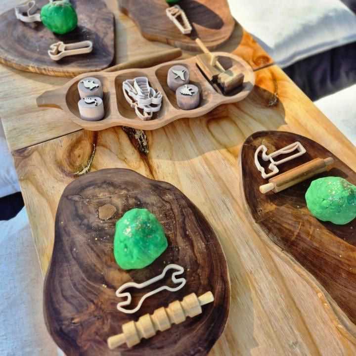 It can be used for open ended play, decorative purposes or for food. The wood is finished with food safe oil and to re-fresh the look you can use coconut or olive oil.