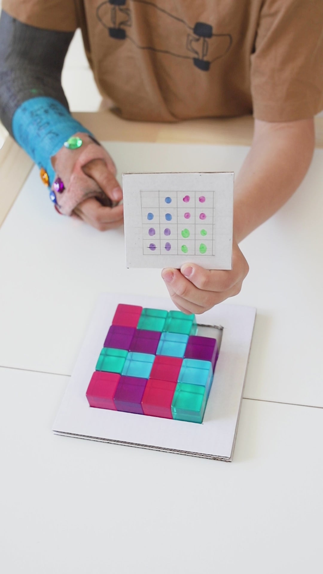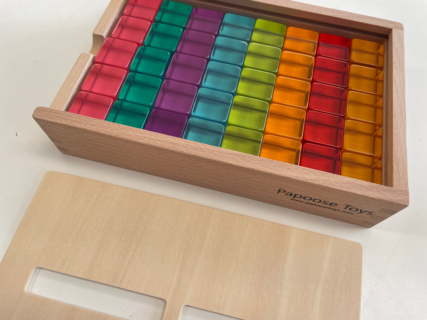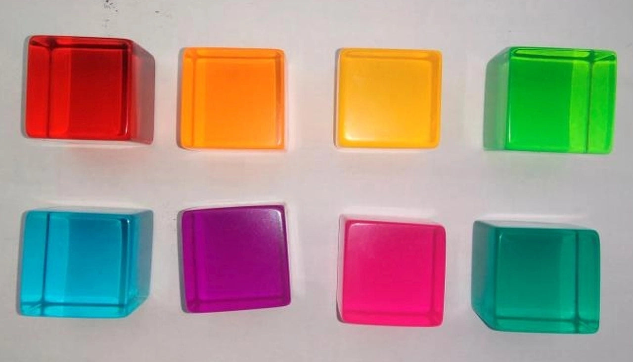 Lucite cubes should not be played with on hard surfaces such as concrete or tiles and are best played with on a squishy playmat, rug or carpet. The pieces can chip when dropped onto a hard surface from a table top height.