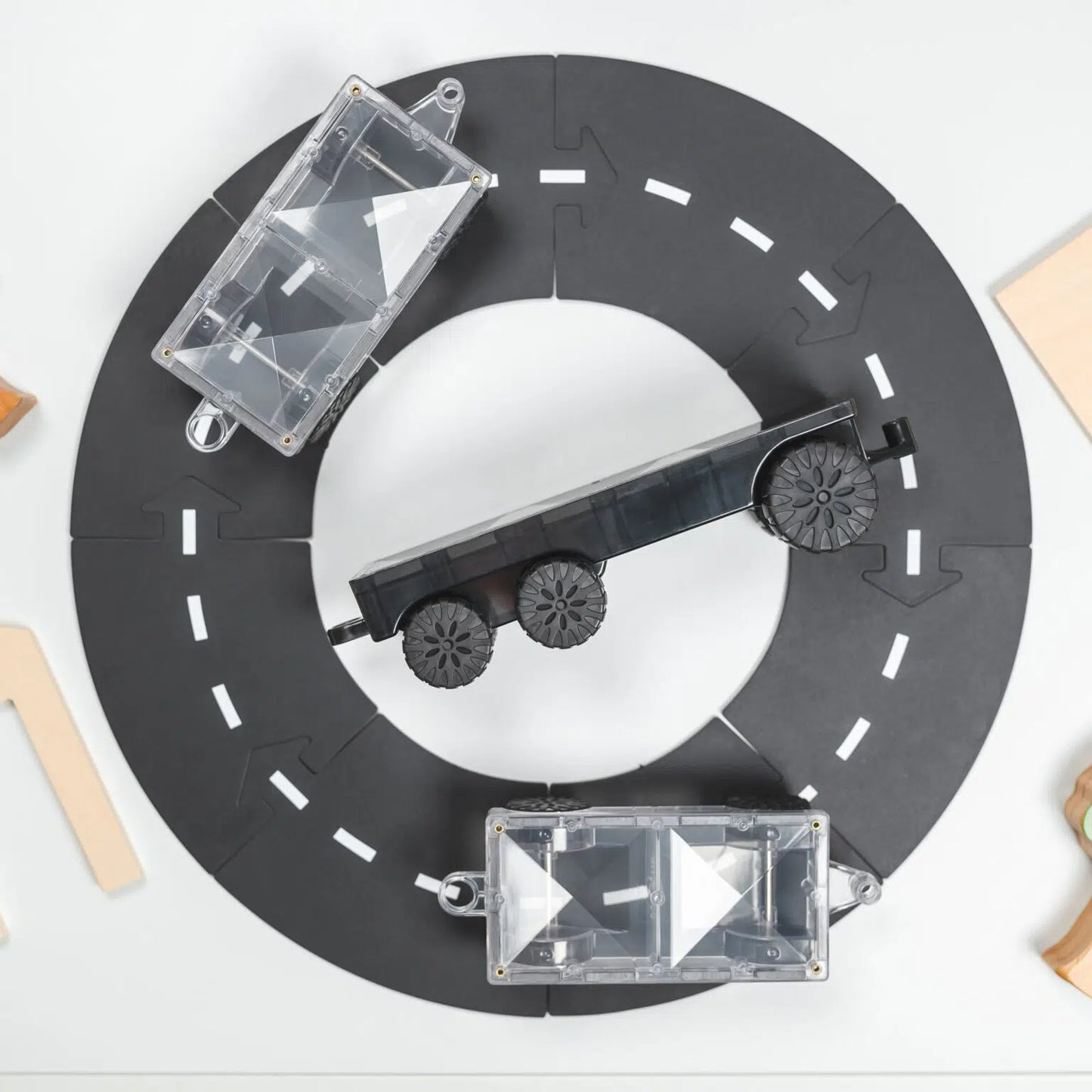 Gear up for epic vehicle fun with the Connetix Transport Pack. Designed with vehicle enthusiasts in mind, this pack features one REVERSIBLE grey transport base, two clear motion bases with REAL rubber wheels, plus a range of magnetic tile shapes to help build and create endless vehicle designs.