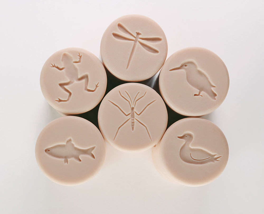 Let’s go pond dipping! There are so many discoveries to be made with this set of intriguing rollers. As you roll and stamp into play dough or clay, reveal the hidden stories of what lives in and around our ponds. Match the frogs to the lily pads, hide the fish in the weeds, see how the dragonfly darts through the rushes, all while creating satisfying sensory art. Children will develop the muscles in their hands as they press and roll in different ways.