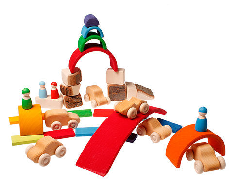 Grimm's Natural Wooden Cars come as a set of 6. They can travel comfortably over bridges and along the Waytoplay roads. They are the perfect size for easy grasping by small children.